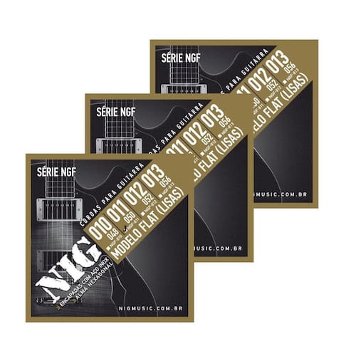 Kit 3 Encordoamentos Guitarra NIG .011/.050 Flat NGF-811 Descrição O encordoamento NIG NGF-811, com medidas variando de .011 a .050, é a escolha perfeita para guitarristas que buscam cordas mais pesadas e com um timbre diferenciado. Esse encordoamento é especialmente indicado para estilos como Jazz e MPB, onde a riqueza sonora e a precisão nas notas são essenciais. Com seu modelo Flat e sua composição cuidadosa, ele oferece uma sonoridade encorpada e expressiva, ideal para músicos que desejam extrair o máximo de seus instrumentos em performances que exigem qualidade sonora superior. As cordas graves, ou bordões, são cuidadosamente encapadas com aço inoxidável laminado e possuem uma alma hexagonal de aço estanhado e polido, proporcionando durabilidade e uma excelente resposta tonal. As cordas agudas, ou primas, são feitas de aço carbono estanhado e polido, garantindo uma superfície lisa e um toque suave. A combinação desses materiais e a construção de alta qualidade fazem do NIG NGF-811 uma opção indispensável para quem valoriza um timbre distinto e quer levar sua música a um novo patamar. Especificações Técnicas: - Cordas mais pesadas com timbre diferenciado - Ideal para tocar Jazz, MPB e outros estilos musicais que exigem qualidade sonora superior - Modelo Flat - Materiais: - Bordões: Encapados com aço inoxidável laminado, alma hexagonal sextavada de aço estanhado e polido - Primas cordas lisas : Em aço carbono estanhado e polido Itens Inclusos: - 6 cordas de guitarra NIG NGF-811 : - 3 meses de pelo fabricante Origem: - China Imagens meramente ilustrativas.