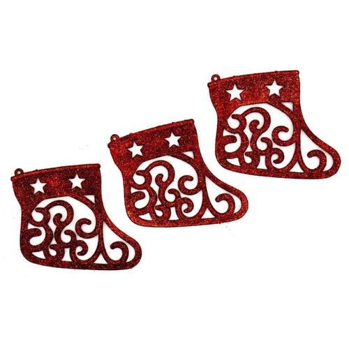 Kit contendo 3 Enfeites de Natal de Plástico, de 10 cm, com formato de Trenó nas cores Prateado, Vermelho e Dourado, sendo 3 unidades de cada cor.
