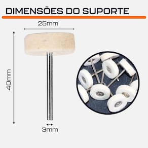 Kit com 3 Ponta Montada / Escova de Feltro 25mm para Polimento com Micro Retíficas Dremax