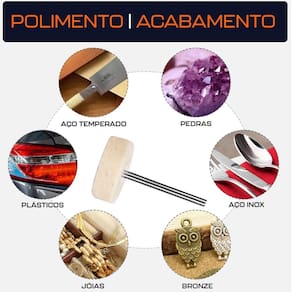- Marca: Dremax - Jogo exclusivo com 3 escovas de feltro - Indicado para polimentos - Diâmetro da escova: 25mm - Haste: 3mm - Uso em micro retíficas de qualquer marca com pinça de 3mm - Para polir metais e plásticos em superfícies planas ou orifícios - Indicada para polimento de metais ferrosos ou não ferrosos, aço, aço inoxidável, alumínio, bronze, cobre, latão e plástico em geral - Garantia: 90 dias contra defeitos de fabricação