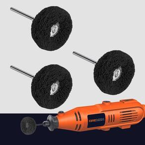 Kit com 3 Escovas de Polimento Nylon 25mm Grão 400 com Haste 2,35mm para Micro Retíficas Dremax