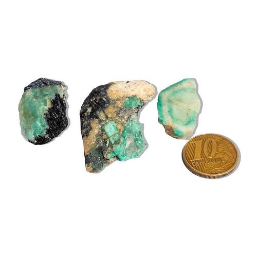 Prepare-se para explorar o poder e a beleza da Esmeralda Bruta, uma pedra preciosa única que traz não apenas estética, mas também energias transformadoras para sua vida. Se está à procura de algo autêntico e repleto de história, esta pedra é ideal. A Beleza Natural da Esmeralda Bruta Com uma cor verde intensa, variando entre tons mais suaves e vibrantes, a Esmeralda Bruta se destaca por sua aparência crua e genuína. Sua formação natural, que varia em padrões e texturas, faz de cada peça uma joia única. Ao observar a pedra, é possível ver a história da Terra que a moldou, com suas inclusões e traços característicos. Benefícios para Corpo e Alma Mais do que uma simples pedra decorativa, a Esmeralda Bruta é reverenciada por suas propriedades energéticas e espirituais. Associada à renovação, equilíbrio e ao amor, ela é considerada uma excelente aliada para o bem-estar, ajudando a promover harmonia e vitalidade tanto no corpo quanto na alma. Especificações do Produto\nNome: Esmeralda Cor: Verde Corte: Bruta Claridade: Cor sólida Medidas aproximadas: Entre 10 e 60 mm Peso Aproximado: 0 a 25 gramas Origem: Brasil\nImportante: As fotos são ilustrativas do lote, podendo haver variações naturais de tonalidade e grafismos, além de pequenas inclusões que fazem parte da autenticidade das pedras. A hidratação é feita com óleo mineral, garantindo o melhor cuidado da pedra. Como Utilizar a Esmeralda Bruta Versatilidade é uma das principais características da Esmeralda Bruta. Aqui estão algumas sugestões para aproveitá-la ao máximo:\nMeditação e Renovação: Utilize a pedra em momentos de meditação, permitindo que ela ajude na conexão com a energia de equilíbrio e renovação. Colecionismo: Ideal para quem coleciona pedras preciosas, a Esmeralda Bruta é uma adição rara e valiosa, com características exclusivas. Presente Especial: Ofereça uma Esmeralda Bruta como presente único e significativo, transmitindo boas energias e desejos de harmonia e renovação.\n Adquira agora sua Esmeralda Bruta e transforme seu ambiente com uma pedra poderosa, autêntica e cheia de significado. Marca: CristaisdeCurvelo