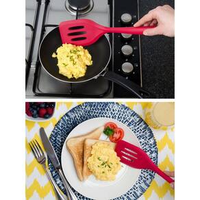 Característica do produto - Feita em silicone a espátula serve para facilitar o seu dia a dia na cozinha proporcionando maior praticidade no momento de preparar e servir os seus convidados. Resistente e elegante. Não risca a panela sendo muito fácil de limpar. Sendo um produto fundamental para preparar suas receitas. Suporta temperatura mínima 40c e máxima - 230c espátula vazada furada chapeiro em silicone resistente ao calor até 240c fritura chapa - 28cm - resistente - anatômico - não abrasivo - maleável - fácil de lavar - - antiaderente - alta durabilidade - não derrete com o calor - não absorve sabores e aromas