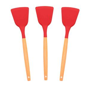 Kit 3 Espátulas Silicone Chapa 32cm Cabo Madeira Vermelha Característica do Produto - Feita em Silicone e Madeira a espátula serve para facilitar o seu dia a dia na cozinha proporcionando maior praticidade no momento de preparar e servir os seus convidados. Resistente e elegante. Não risca a panela sendo muito fácil de limpar. Sendo um produto fundamental para preparar suas receitas. Suporta Temperatura Mínima 40C e máxima - 230C