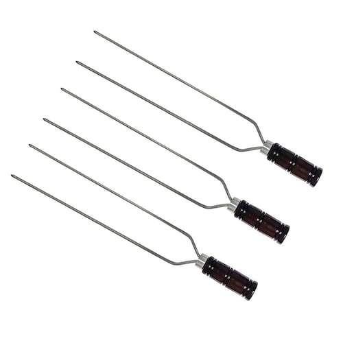 Kit 3 Espetos Duplo para Churrasco 81cm Cabo de Madeira
