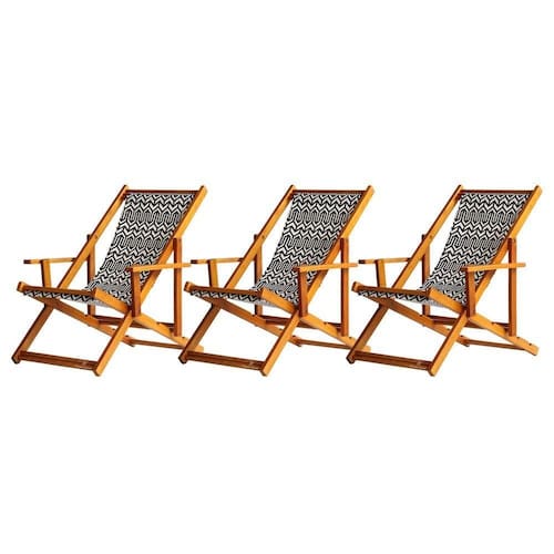 Kit 3 Espreguiçadeira Preguiçosa Dobrável Mel Cb-retro 3 ESPREGUIÇADEIRAS ENVERNIZADA MEL C/BSabe aquele final de tarde que você tanto espera para tirar um descanso merecido? Ou aquela viagem para a praia programada a meses com a família? Pois é, nossas cadeiras espreguiçadeira serve exatamente para esses momentos, com várias opções de cores, os tecidos além de charmosos são hidro-repelentes e se adequam a qualquer ambiente, facilmente removíveis para higienização.Estrutura 100% de madeira maciça de ótima qualidade, a espreguiçadeira é totalmente dobrável e reclinável (4 posições de ângulo), com descanso para braço, sendo possível montar invertida sem o encosto de braço, perfeita para seu lazer em todos os ambientes, esse é o item que definitivamente não pode faltar na vida de quem de fato, quer aproveitar bons momentos! FICHA TÉCNICA DO PRODUTO:04 Níveis de Regulagem de Altura;Tecido Reforçado;Fabricada em Madeira Maciça Pinus;Peso aproximado: 7,5 Kg;Suporta aproximadamente 120 kg;Cor da Madeira: Mel Dimensões aproximadas do Produto:Altura 1: 69 cm;Altura 2: 82 cm;Altura 3: 91 cm;Altura 4: 100 cm;Profundidade: 105 cm. Dimensão aproximada total:Comprimento: 135 cm;Largura: 66 cm; Informações Adicionais:Garantia: 90 dias contra defeitos de fabricação.Acompanha 3 cadeiras Obs. A cor pode variar da foto conforme a tonalidade da madeira e iluminação.. !! Marca: Brasil Móveis