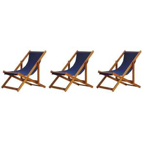 Kit 3 Espreguiçadeira Preguiçosa Dobrável Mel Sb-azul Marinho 3 ESPREGUIÇADEIRAS EM MADEIRA ENVERNIZADA MEL S/BSabe aquele final de tarde que você tanto espera para tirar um descanso merecido? Ou aquela viagem para a praia programada a meses com a família? Pois é, nossas cadeiras espreguiçadeira serve exatamente para esses momentos, com várias opções de cores, os tecidos além de charmosos são hidro-repelentes e se adequam a qualquer ambiente, facilmente removíveis para higienização.Estrutura 100% de madeira maciça e verniz especial, que garante sua qualidade e durabilidade, a espreguiçadeira é totalmente dobrável e reclinável (4 posições de ângulo), perfeita para seu lazer em todos os ambientes, seja ele externo ou interno, esse é o item que definitivamente não pode faltar na vida de quem de fato, quer aproveitar bons momentos! FICHA TÉCNICA DO PRODUTO:04 Níveis de Regulagem de Altura;Tecido Reforçado;Fabricada em Madeira Maciça Pinus;Peso aproximado: 7,5 Kg;Suporta aproximadamente 120 kg;Cor da Madeira: Mel;Acabamento: Envernizada Dimensões aproximadas do Produto:Altura 1: 69 cm;Altura 2: 82 cm;Altura 3: 91 cm;Altura 4: 100 cm;Profundidade: 105 cm. Dimensão aproximada total:Comprimento: 135 cm;Largura: 60 cm; Informações Adicionais:Garantia: 90 dias contra defeitos de fabricação. Obs. A cor pode variar da foto conforme a tonalidade da madeira e iluminação..