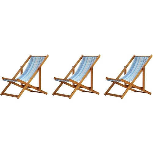 Kit 3 Espreguiçadeira Preguiçosa Dobrável Mel Sb-listras Azuis 3 ESPREGUIÇADEIRAS EM MADEIRA ENVERNIZADA MEL S/BSabe aquele final de tarde que você tanto espera para tirar um descanso merecido? Ou aquela viagem para a praia programada a meses com a família? Pois é, nossas cadeiras espreguiçadeira serve exatamente para esses momentos, com várias opções de cores, os tecidos além de charmosos são hidro-repelentes e se adequam a qualquer ambiente, facilmente removíveis para higienização.Estrutura 100% de madeira maciça e verniz especial, que garante sua qualidade e durabilidade, a espreguiçadeira é totalmente dobrável e reclinável (4 posições de ângulo), perfeita para seu lazer em todos os ambientes, seja ele externo ou interno, esse é o item que definitivamente não pode faltar na vida de quem de fato, quer aproveitar bons momentos! FICHA TÉCNICA DO PRODUTO:04 Níveis de Regulagem de Altura;Tecido Reforçado;Fabricada em Madeira Maciça Pinus;Peso aproximado: 7,5 Kg;Suporta aproximadamente 120 kg;Cor da Madeira: Mel;Acabamento: Envernizada Dimensões aproximadas do Produto:Altura 1: 69 cm;Altura 2: 82 cm;Altura 3: 91 cm;Altura 4: 100 cm;Profundidade: 105 cm. Dimensão aproximada total:Comprimento: 135 cm;Largura: 60 cm; Informações Adicionais:Garantia: 90 dias contra defeitos de fabricação. Obs. A cor pode variar da foto conforme a tonalidade da madeira e iluminação..
