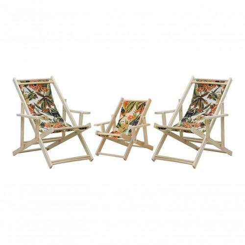 Kit 3 Espreguiçadeiras 2 Adulto E 1 Infantil-tucano 3 ESPREGUIÇADEIRAS C/B (2 ADULTO e 1 INFANTIL)Sabe aquele final de tarde que você tanto espera para tirar um descanso merecido? Ou aquela viagem para a praia programada a meses com a família? Pois é, nossas cadeiras espreguiçadeira serve exatamente para esses momentos, com várias opções de cores, os tecidos além de charmosos são hidro-repelentes e se adequam a qualquer ambiente, facilmente removíveis para higienização.Estrutura 100% de madeira maciça de ótima qualidade, a espreguiçadeira é totalmente dobrável e reclinável (4 posições de ângulo), com descanso para braço, sendo possível montar invertida sem o encosto de braço, perfeita para seu lazer em todos os ambientes, esse é o item que definitivamente não pode faltar na vida de quem de fato, quer aproveitar bons momentos! Medidas Cadeira Espreguiçadeira Adulto:Dimensões aproximadas do produto:Comprimento: 135 cm;Largura: 68 cm;Peso: 8,5 Kg4 Níveis de regulagem de alturaSuporta aproximadamente 120 kg.Fabricada Madeira Maciça Pinus Medidas Cadeira Espreguiçadeira Infantil:Dimensões aproximadas do produto:Altura 1: 74,5 cm;Altura 2: 64 cm;Altura 3: 51 cm;Profundidade: 66 cm.Dimensão aproximada total:Comprimento: 64 cm;Largura: 56 cm;03 Níveis de Regulagem de Altura;Tecido Reforçado;Fabricada em Madeira Maciça Pinus;Peso aproximado: 5,5 Kg;Suporta aproximadamente 70 kg;Cor da Madeira: ;Informações Adicionais:Garantia: 90 dias contra defeitos de fabricação.Acompanha 2 cadeiras adultas e 1 infantil Obs. A cor pode variar da foto conforme a tonalidade da madeira e iluminação.. !!