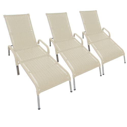 O revestimento da espreguiçadeira é feito com fibra sintética de alta resistência, que possui proteção contra Raios UV. Além disso, o material é ergonomicamente projetado e possui um acabamento agradável ao toque.