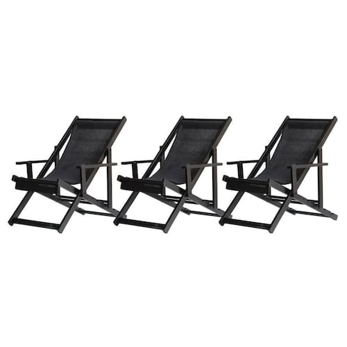 Kit 3 Espreguiçadeiras Dobrável Black Cb-preto 3 ESPREGUIÇADEIRAS ENVERNIZADAS BLACK C/BSabe aquele final de tarde que você tanto espera para tirar um descanso merecido? Ou aquela viagem para a praia programada a meses com a família? Pois é, nossas cadeiras espreguiçadeira serve exatamente para esses momentos, com várias opções de cores, os tecidos além de charmosos são hidro-repelentes e se adequam a qualquer ambiente, facilmente removíveis para higienização.Estrutura 100% de madeira maciça e verniz especial, que garante sua qualidade e durabilidade, a espreguiçadeira é totalmente dobrável e reclinável (4 posições de ângulo), com descanso para braço, sendo possível montar invertida sem o encosto de braço, perfeita para seu lazer em todos os ambientes, seja ele externo ou interno, esse é o item que definitivamente não pode faltar na vida de quem de fato, quer aproveitar bons momentos! FICHA TÉCNICA DO PRODUTO:04 Níveis de Regulagem de Altura;Tecido Reforçado;Fabricada em Madeira Maciça Pinus;Peso aproximado: 7,5 Kg;Suporta aproximadamente 120 kg;Cor da Madeira: Preta Dimensões aproximadas do Produto:Altura 1: 69 cm;Altura 2: 82 cm;Altura 3: 91 cm;Altura 4: 100 cm;Profundidade: 105 cm. Dimensão aproximada total:Comprimento: 135 cm;Largura: 66 cm; Informações Adicionais:Garantia: 90 dias contra defeitos de fabricação.Acompanha 3 cadeiras Obs. A cor pode variar da foto conforme a tonalidade da madeira e iluminação.. !! Marca: Brasil Móveis