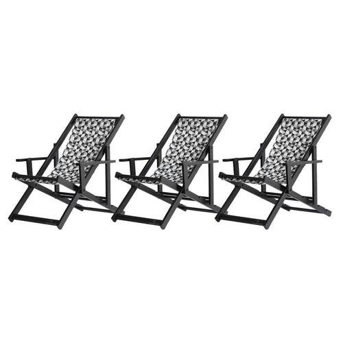 Kit 3 Espreguiçadeiras Dobrável Black Cb-triang Preto 3 ESPREGUIÇADEIRAS ENVERNIZADAS BLACK C/BSabe aquele final de tarde que você tanto espera para tirar um descanso merecido? Ou aquela viagem para a praia programada a meses com a família? Pois é, nossas cadeiras espreguiçadeira serve exatamente para esses momentos, com várias opções de cores, os tecidos além de charmosos são hidro-repelentes e se adequam a qualquer ambiente, facilmente removíveis para higienização.Estrutura 100% de madeira maciça e verniz especial, que garante sua qualidade e durabilidade, a espreguiçadeira é totalmente dobrável e reclinável (4 posições de ângulo), com descanso para braço, sendo possível montar invertida sem o encosto de braço, perfeita para seu lazer em todos os ambientes, seja ele externo ou interno, esse é o item que definitivamente não pode faltar na vida de quem de fato, quer aproveitar bons momentos! FICHA TÉCNICA DO PRODUTO:04 Níveis de Regulagem de Altura;Tecido Reforçado;Fabricada em Madeira Maciça Pinus;Peso aproximado: 7,5 Kg;Suporta aproximadamente 120 kg;Cor da Madeira: Preta Dimensões aproximadas do Produto:Altura 1: 69 cm;Altura 2: 82 cm;Altura 3: 91 cm;Altura 4: 100 cm;Profundidade: 105 cm. Dimensão aproximada total:Comprimento: 135 cm;Largura: 66 cm; Informações Adicionais:Garantia: 90 dias contra defeitos de fabricação.Acompanha 3 cadeiras Obs. A cor pode variar da foto conforme a tonalidade da madeira e iluminação.. !! Marca: Brasil Móveis