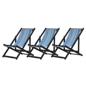 Kit 3 Espreguiçadeiras Dobrável Black Sb-listras Azuis 3 ESPREGUIÇADEIRAS ENVERNIZADAS BLACK S/BSabe aquele final de tarde que você tanto espera para tirar um descanso merecido? Ou aquela viagem para a praia programada a meses com a família? Pois é, nossas cadeiras espreguiçadeira serve exatamente para esses momentos, com várias opções de cores, os tecidos além de charmosos são hidro-repelentes e se adequam a qualquer ambiente, facilmente removíveis para higienização.Estrutura 100% de madeira maciça e verniz especial, que garante sua qualidade e durabilidade, a espreguiçadeira é totalmente dobrável e reclinável (4 posições de ângulo), perfeita para seu lazer em todos os ambientes, seja ele externo ou interno, esse é o item que definitivamente não pode faltar na vida de quem de fato, quer aproveitar bons momentos! FICHA TÉCNICA DO PRODUTO:04 Níveis de Regulagem de Altura;Tecido Reforçado;Fabricada em Madeira Maciça Pinus;Peso aproximado: 7,5 Kg;Suporta aproximadamente 120 kg;Cor da Madeira: PretaAcabamento: Envernizada Dimensões aproximadas do Produto:Altura 1: 69 cm;Altura 2: 82 cm;Altura 3: 91 cm;Altura 4: 100 cm;Profundidade: 105 cm. Dimensão aproximada total:Comprimento: 135 cm;Largura: 60 cm; Informações Adicionais:Garantia: 90 dias contra defeitos de fabricação.Acompanha 3 cadeiras Obs. A cor pode variar da foto conforme a tonalidade da madeira e iluminação..