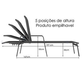 As espreguiçadeiras são leves, compactas, podem ficar expostas ao tempo (sol e chuva) e são empilháveis.