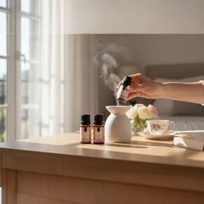 A Essência Delicatê Via Aroma apresenta uma composição de notas delicadas e suaves que tornam o ambiente mais feminino. É frequentemente utilizada no quarto por sua delicadeza aromática, com notas florais e frutais se destacando e um fundo balsâmico amadeirado para dar mais peso ao aroma.
