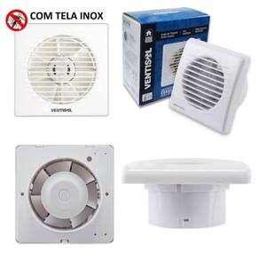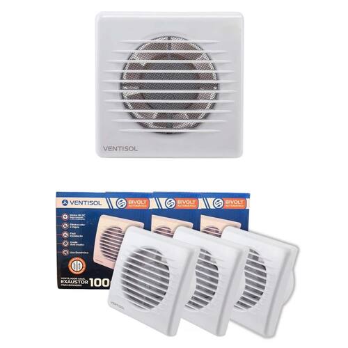 Kit 3 Exaustor Silencioso para Banheiro 10cm Grade Insetos Kit 3 Exaustor Silencioso para Banheiro 10cm Grade Insetos Bivolt 110V/220V de Teto ou Parede