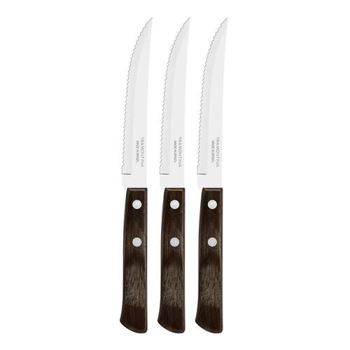 Kit 3 Facas de Churrasco Tramontina Polywood Inox Cabo Castanho