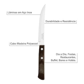 3 - Facas de Churrasco Tramontina Polywood Inox Cabo Castanho.