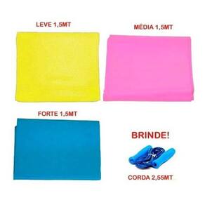 Kit 3 faixas elásticas thera band Kit 3 faixas elásticas thera band one life com 3 níveis fisioterapia treino musculação Indicações: Reabilitação de lesões, revenção de lesões reincidentes, uso pós-cirúrgico, treinamento funcional esportivo, fitness, alongamento, pilates, yoga e Condicionamento corporal. Podem ser utilizadas em fisioterapia, terapia ocupacional, ortopedia, medicina esportiva, pediatria, geriatria, terapia manual, quiropraxia, neurologia, medicina do trabalho, educação física, Benefícios: Promove o fortalecimento muscular e articular, tanto em programas de reabilitação quanto em programas de fitness ou condicionamento físico. Modo de usar: Pode ser Utilizado em exercícios de pernas, braços, abdômen, peitoral e glúteos. Após o uso lave as faixas em água limpa e abundante para remover resíduos. Deixe secar completamente e, após, polvilhe com talco. Características: As faixas elásticas desse conjunto possuem 3 intensidades: Leve: 1200 x 130 x 0.3 mm - média: 1200 x 130 x 0.4 mm : 3 meses contra defeito de fabricação Imagens meramente ilustrativa