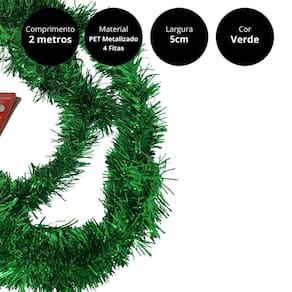 - 03 Unidades Festão Metalizado Natalino Verde Brilhante – 5cm x 2 metros