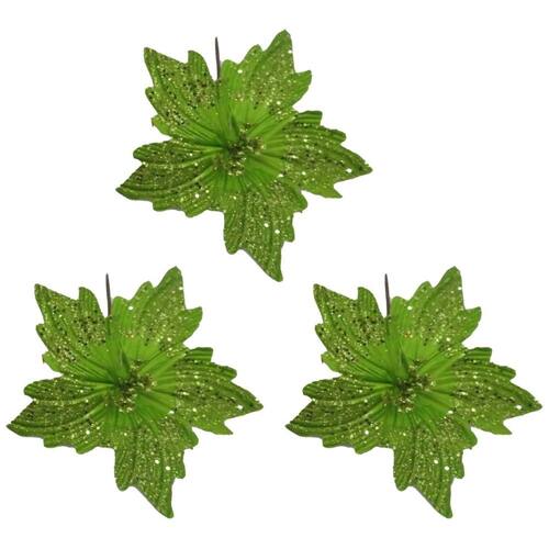 Kit 3 Flores Bico de Papagaio Pick Natalina Glitter Verde 20cm