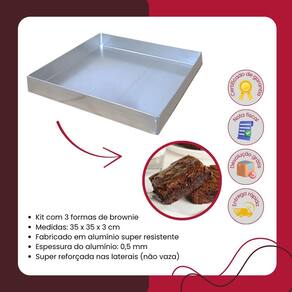 3 forma brownie alumínio - 35x35x3 cm