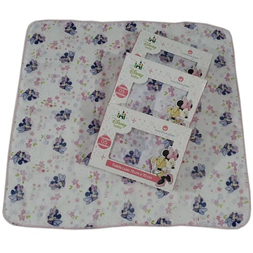 Adicione charme e funcionalidade ao enxoval do seu bebê com o kit com 3 fraldas de pano estampadas da Minnie. Essenciais para o dia a dia, essas fraldas combinam qualidade, conforto e a magia Disney, trazendo um toque especial aos cuidados do seu pequeno.