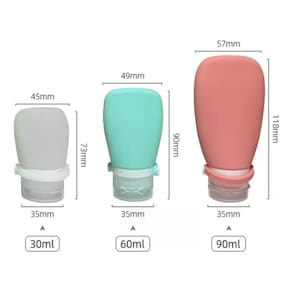 Kit Frascos Portáteis de Silicone – 90ml, 60ml e 30ml | Para Viagem, Academia, Escritório e Dia a Dia