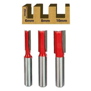 Kit com 3 Fresas Retas 6 a 110mm Haste 6mm Corte Duplo para Madeira Tupia com Dentes de Metal Duro Jogo com 3 Fresas Reta haste 6mm e diâmetros de corte: 6mm, 8mm e 10mm para acabamento. Com dentes de metal duro, indicada para acabamentos laterais em madeira e derivados, utilizada em tupia - Marca: VAZ - Haste: 6mm - Kit com 3 fresas retas - Diâmetros do corte: 6mm, 8mm e 10mm - Fresa com dentes de metal duro - Indicada para acabamentos laterais em madeira e derivados, utilizada em tupia - Possui 2 dentes de vídea/metal duro, conferindo maior durabilidade - : 90 dias Marca: Não Informado