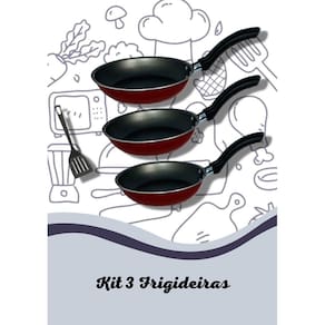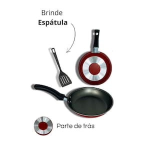 Kit 3 Frigideiras Vermelha Antiaderente Teflon + 1 Espatula