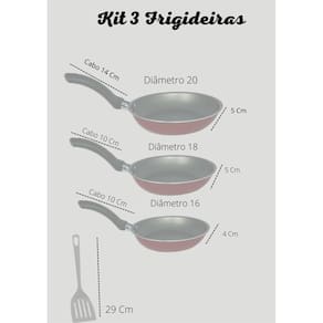 Jogo de Frigideira Antiaderente Alumínio Forte Teflon 16cm, 18cm e 20cm 3 peças mais a espátula