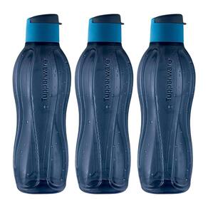 O Kit Contém: 3 Garrafas de Água Tupperware Eco Tupper Azul de 1L cada.
