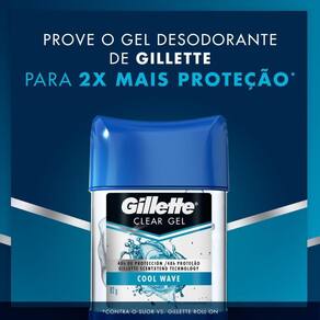 Os antitranspirantes Clear gel da Gillette oferecem proteção antibacteriana por até 48 horas contra 99% das bactérias que geram o odor corporal. Ele também fornece fragrância que dura o dia todo.