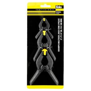 Os grampos sargento Multiuso da marca Eda Profissional são fabricados em fibra de nylon, o que os torna leves e resistentes à ferrugem. Além disso, possuem punhos texturizados que garantem firmeza ao segurar, facilitando o manuseio.