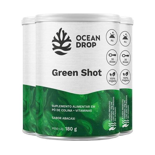 Kit 3 Green Shot Ocean Drop Vegano 180g Sabor Abacaxi O Green Shot é uma forma prática de aumentar o consumo de frutas e vegetais, ajudar na hidratação do corpo e fornecer ingredientes benéficos para a saúde. Ele possui ação antioxidante, melhora a imunidade, auxilia na formação de colágeno e no metabolismo energético, além de complementar a ação desintoxicante de uma dieta saudável. Modo de consumo: - Diluir 1 colher de sobremesa aproximadamente 6g em 100ml de água ou conforme recomendação . - Produto com duração de 1 mês. Composição: - Polpa de abacaxi, extrato de couve, polpa de água de coco, polpa de maçã, extrato de pepino, gengibre em pó, matchá Camellia Sinensis , bitartarato de colina, polpa de limão, ácido ascórbico, betacaroteno, acetato de DL alfa tocoferol, cianocobalamina, coenzima Q10, acidulante ácido cítrico, aromatizante e antiumectante dióxido de silício. - NÃO CONTÉM GLÚTEN. Indicação: - Desintoxicante - Efeito Detox. - Antioxidante. - Metabolismo e Oxidação de Gorduras. Contraindicação: - Este produto é indicado para o grupo populacional maior de 19 anos. - Não deve ser consumido por gestantes, lactantes e crianças. - Este produto não é um . Sabor: Abacaxi. Marca: Não Informado