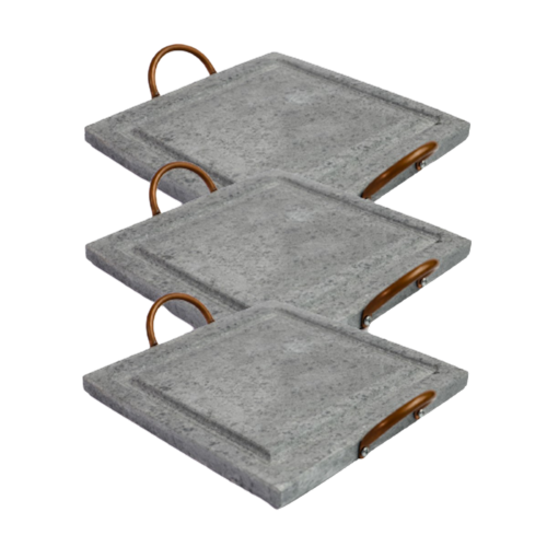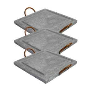03 Grelhas Para Carnes Servir Porção em Pedra Sabão G 25x25cm.