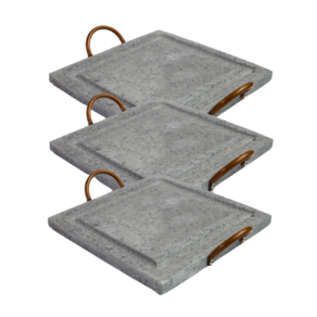 03 Grelhas Para Carnes Servir Porção em Pedra Sabão P 20x20cm.