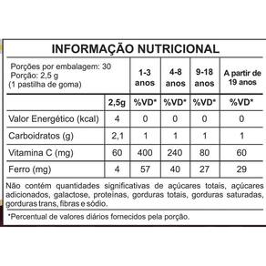 Kit 3 gummy ferro + vitamina c sabor laranja unilife 30 gomas Modo de ingestão: ingerir 1 goma ao dia. Este produto é recomendado para grupo populacional a partir de 1 ano. Este produto não é um . Não exceder a recomendação diária de consumo indicada na embalagem. Mantenha fora do alcance de crianças. Ingredientes: água, ácido ascórbico, bisglicinato ferroso, acidulante ácido cítrico, aroma natural de laranja, corantes vermelho beterraba e beta-caroteno de blakeslea trispora, edulcorante isomalte, gelificante pectina, glaceante cera de carnaúba e regulador de acidez di-hidrogenocitrato de sódio. Livre de lactose. Não contém glúten. Produto vegano. Produto autorizado para comercialização em todo o território nacional através do anexo i da rdc 240/2018 da anvisa. Afe do ms 6.02234-1.