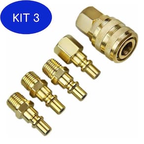 Jogo de engate rápido 1/4 para usar como conexão prática entre a mangueira de um compressor de ar e os equipamentos pneumáticos, proporcionando maior agilidade e praticidade.Marca: edaCaracterísticas:-pinos de 1/4.-rosca.-material: Cobre, ferro e borracha.-ótima qualidade.Conteúdo:-1 Engate rápido-3 Engates macho-1 Engate fêmea.Aplicação: ideal para conectar uma mangueira em um compressor de ar.Código: 9qmCONTEÚDO DA EMBALAGEM: 3 Jogo De Engate Rápido Rosca 1/4 Pol 5 Peças