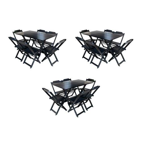 Kit 3 Jogos De Mesa Dobravel Com 6 Cadeiras De Madeira 120x70 Para Restaurante E Bar - Preto