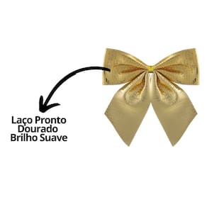 Produzidos em material leve e resistente (poliéster), possuem acabamento em tonalidade dourada com brilho suave, que proporciona um visual sofisticado e discreto. O laço vem pronto para aplicar, economizando tempo e facilitando a montagem da sua decoração de fim de ano.