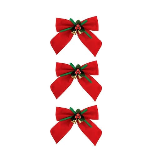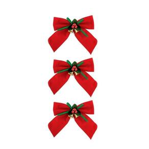 -03 unidades Laço Vermelho Aveludado 11x11cm Decorado Mini Sinos e Folhagens Berries