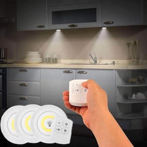 Kit 3 lampadas luminária led spot sem fio controle remoto os spots podem ser acionados por controle remoto ou por toque no botão frontal. Função timer que desliga sozinha em 30 minutos. - pode ser aceso individualmente ou em conjunto- pode ser utilizado no mesmo cômodo, ou em ambientes diferentes.- com regulador de intensidade da luz - opção: luz forte ou luz média led cob ultra brilhante: o led cob ultra brilhante melhorado proporciona um brilho de até 150 lumens que é 3 vezes mais brilhante que o led normal. Controle de 2 vias: o controle remoto ir permite que você ajuste o brilho em 2 níveis e controle de tempo para desligar a luz em 30 minutos sem fio a uma distância de até 4 metros.Você também pode ligar / desligar a luz do disco, tocando no interruptor na lente das luzes. Instalação fácil: use o adesivo de dupla face para fixar a luz do disco em qualquer lugar que você queira iluminar.Bateria operada: alimentado por pilhas aaa não incluídas para instalação sem fio. Ideal para cozinha, armário, armário, balcão, prateleira, garagem, porão ou locais escuros semelhantes, onde você pode precisar de alguma iluminação forte por alguns minutos de vez em quando. Especificações:led: led de 5w cobbrilho: 150 lumensmontagem: 3m tape stick ontipo de bateria: 3 pilhas aaatipo de bateria de controle remoto: 2 pilhas aaatipos de acendimento: toque ou controle remotodistância de controle: até 4 metrosdimensão lampada: 972.1cmdimensão controle: 85.91.5cmpeso: 90g o pacote inclui:3 x led cob1 x controle remoto Marca: Canal Das Coisas Ean: 7908553312904