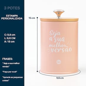 Transforme a organização da sua cozinha em um detalhe cheio de charme. O Kit com 3 Latas Herméticas traz frases inspiradoras que deixam o ambiente mais leve e acolhedor, enquanto mantêm seus alimentos frescos por muito mais tempo. As tampas de bambu adicionam um toque natural e sofisticado, combinando praticidade com design moderno.