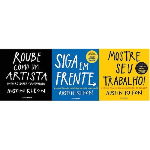 Kit 3 livros austin kleon roube como um artista + siga em frente + mostre seu trabalho + mostre seu trabalho