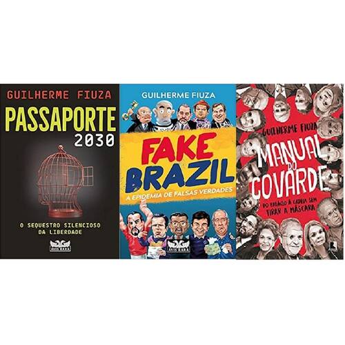 Kit 3 livros guilherme fiuza manual do covarde + fake brazil + passaporte 2030