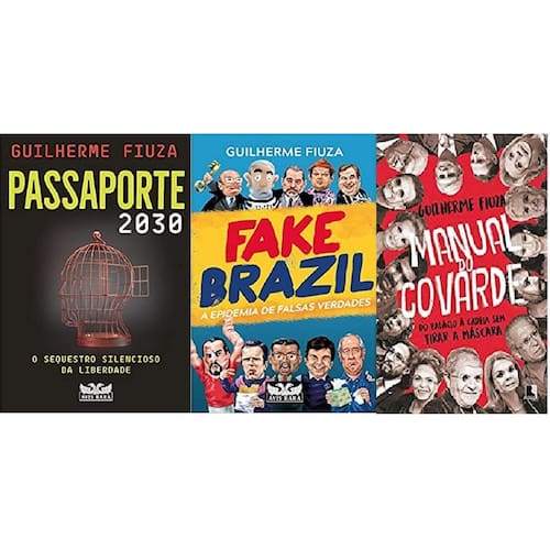 Kit 3 livros guilherme fiuza manual do covarde + fake brazil + passaporte 2030