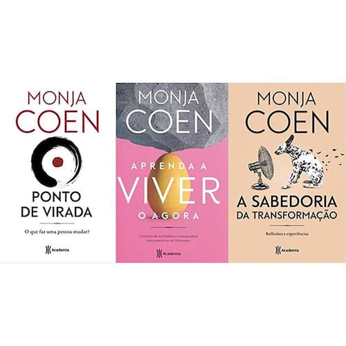 Kit 3 livros monja coen ponto de virada + aprenda a viver o agora + a sabedoria da transformação Kit 3 livros monja coen Ponto de viradaA hora é agora Diante de um dos momentos mais dramáticos da história da humanidade é fundamental refletir com serenidade sobre como lidar com os problemas que todos enfrentamos. Uma das maiores líderes espirituais do país, Monja Coen atende a este chamado e faz neste livro um sensível convite ao desapego, como ferramenta para lidar com as dificuldades que a pandemia nos trouxe a todos. Intelectual respeitada, e autora best-seller com centenas de milhares de livros vendidos, Monja Coen reflete sobre importância de aproveitar estes momentos duros para empreendermos mudanças positivas e decisivas em nossas vidas. "O texto da monja Coen foi uma luz sobre minha quarentena", diz a respeito do livro Leandro Karnal.Editora : Academia; 1ª edição 25 julho 2020 Idioma : PortuguêsCapa comum : 160 páginasISBN-10 : 6555350946Aprenda a viver o agoraOnja Coen nos ensina a viver o presente a partir de princípios zen Quanto ao passado nada se pode fazer. O futuro é uma surpresa. O agora é mutável, é palpável, é real. Assuma o controle de sua vida ao entender que só pode ser dono do presente. Neste livro, Monja Coen demonstrará que é possível estar presente por completo em qualquer atividade. O agora é o único momento real que existe. O passado não pode ser refeito, o futuro nós ainda não sabemos como será. Porém, o presente é real, só depende de nós. Atualmente, as distrações diárias são infinitas. Por isso, o simples fato de estar 100% focado no agora é uma das capacidades mais importantes. Neste livro, a partir de conceitos do zen-budismo e do mindfulness atenção plena , Editora : Academia; 1ª edição 30 abril 2019 Idioma : PortuguêsCapa comum : 192 páginasISBN-10 : 8542215966A sabedoria da transformaçãoPara buscar e encontrar a transformação Neste livro, Monja Coen, missionária oficial da tradição Sôtô Zenshû para o Brasil, convida o leitor a lançar um olhar sobre si mesmo e a rever valores e conceitos. Num texto leve e bem-humorado, conta fatos históricos e situações cotidianas, fala de personagens ilustres e de pessoas comuns. A sabedoria da transformação procura nos conscientizar da importância de refletir sobre as nossas atitudes no dia a dia, para que, fazendo o nosso melhor, possamos ser a transformação que desejamos ver no mundo. Buscar a paz interior e, consequentemente a felicidade, é uma meta a ser conquistada. Editora : Academia; 2ª edição 22 março 2019 Idioma : PortuguêsCapa comum : 192 páginasISBN-10 : 8542215710