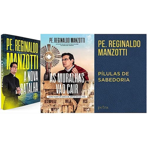 KIT 3 LIVROS PADRE Reginaldo Manzotti A nova batalha + As muralhas vão cair + Pílulas de Sabedoria KIT 3 LIVROS PADRE Reginaldo Manzotti A nova batalha + As muralhas vão cair + Pílulas de Sabedoria A nova batalha: o natural e o sobrenatural; as da fé na pandemia do século Capa comum - 30 abril 2021 Edição Português por Reginaldo Manzotti Autor Idioma : Português Capa comum : 176 páginas ISBN-10 : 6588444001 ISBN-13 : 978-6588444009 Dimensões : 22.8 x 15.4 x 1 cm Sinta a intensidade da batalha que está sendo travada neste momento Enfrente as forças do mal de frente e descubra como renovar sua fé e esperança em tempos tão desafiadores. No livro A nova batalha, Padre Reginaldo Manzotti revela os segredos para vencer as adversidades que assolam o mundo, mostrando que as para a vitória são colocadas em suas mãos todos os dias, diretamente pelo Criador As muralhas vão cair: Como fazer um Cerco de Jericó em sua vida Capa comum - 5 março 2020 Por Reginaldo Manzotti Autor Idioma : Português Capa comum : 176 páginas ISBN-10 : 8582781709 ISBN-13 : 978-8582781708 Dimensões : 15.24 x 1.04 x 22.86 cm Testemunhe o poder de Deus em derrubar as muralhas que bloqueiam o seu caminho. No livro As muralhas de Jericó , o renomado Padre Reginaldo Manzotti nos transporta para a épica história bíblica em que os israelitas enfrentaram obstáculos aparentemente intransponíveis. Com uma narrativa envolvente, o autor revela os segredos dessa saga, mostrando como a fé, a obediência e a confiança em Deus podem superar qualquer adversidade. Pílulas de Sabedoria Encadernação de couro - 30 dezembro 2019 Edição Português por Reginaldo Manzotti Autor Idioma : Português Encadernação de couro : 304 páginas ISBN-10 : 858278161X ISBN-13 : 978-8582781616 Dimensões : 12.2 x 7.8 x 1.8 cm Descubra o poder transformador das Pílulas de Sabedoria do Padre Reginaldo Manzotti Se você busca uma conexão mais profunda com sua espiritualidade e deseja fortalecer sua vida de oração e piedade, este livro é um verdadeiro tesouro a ser descoberto. Imagine ter em suas mãos as palavras inspiradoras de um sacerdote amado por milhões de fiéis em todo o mundo. Com cada página, o Padre Reginaldo Manzotti oferece uma dose de sabedoria divina, um verdadeiro bálsamo para a alma. Suas mensagens, cuidadosamente selecionadas ao longo de sua missão, são como um guia para os momentos de diálogo com Deus. Marca: Não Informado
