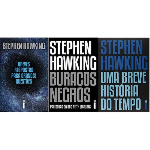Kit 3 livros stephen hawking breves respostas para grandes questões + buracos negros + uma breve história do tempo Kit 3 livros stephen hawking breves respostas para grandes questões + buracos negros + uma breve história do tempo Buracos negros: palestra da bbc reith lectures capa comum - 27 dezembro 2016Edição português Por stephen hawking autor , Cássio de arantes leite tradutor Editora : intrínseca; 1 edição 27 dezembro 2016 Idioma : portuguêsCapa comum : 64 páginasIsbn-10 : 8551000985Isbn-13 : 978-8551000984Dimensões : 20.6 x 14 x 0.4 cm Em 2016 stephen hawking participou da série de palestras bbc reith lectures, promovida pela rede de televisão britânica bbc e transmitida pela rádio bbc 4. A cada ano uma figura proeminente em sua área é convidada a discorrer sobre temas relevantes. Naqueles meses de janeiro e fevereiro, hawking falou sobre um assunto que há décadas ocupa lugar de destaque em suas pesquisas: os buracos negros. Em duas exposições memoráveis, um dos maiores gênios da atualidade argumenta que, se pudéssemos compreender como os buracos negros funcionam e como eles desafiam a natureza do espaço e do tempo, seríamos capazes de desvendar os segredos do universo. Insights de toda uma vida são apresentados com a lucidez e a já conhecida verve cômica de hawking, acrescidos de notas explicativas que situam o leitor nos trechos mais cruciais. Uma breve história do tempo capa comum - 13 janeiro 2015Edição português Por stephen hawking autor , cássio de arantes leite tradutor Editora : intrínseca; 1 edição 13 janeiro 2015 Idioma: portuguêsCondição do item: novoTipo de narração: manualTipo de capa: comumFormato: PapelCapa comum : 256 páginasIsbn-10 : 8580576466Isbn-13 : 978-8580576467Dimensões : 22.8 x 16 x 1.2 cm Uma das mentes mais geniais do mundo moderno, stephen hawking guia o leitor na busca por respostas a algumas das maiores dúvidas da humanidade: qual a origem do universo Ele é infinito E o tempo Sempre existiu, ou houve um começo e haverá um fim Existem outras dimensões além das três espaciais E o que vai acontecer quando tudo terminar Com ilustrações criativas e texto lúcido e bem-humorado, hawking desvenda desde os mistérios da física de partículas até a dinâmica que movimenta centenas de milhões de galáxias por todo o universo. Para o iniciado, uma breve história do tempo é uma bela representação de conceitos complexos; para o leigo, é um vislumbre dos segredos mais profundos da criação. Breves respostas para grandes questões Capa dura - edição padrão, 14 novembro 2018Edição português por stephen hawking autor Detalhes do produtoEditora : intrínseca; 1 edição 14 novembro 2018 Idioma : portuguêsCapa dura : 256 páginasIsbn-10 : 855100431xIsbn-13 : 978-8551004319Dimensões : 21.4 x 14 x 2 cmDesde einstein, o mundo não via um cientista tão reverenciado quanto stephen hawking. Com seu trabalho revolucionário em física e cosmologia, ele encantou milhões de leitores com a origem do universo e a natureza dos buracos negros, além de inspirar todos pela coragem e determinação que mostrou em sua luta contra a doença do neurônio motor. Agora, nesta reunião póstuma de seus trabalhos, podemos conhecer seus pensamentos a respeito das grandes questões que povoam nossas mentes desde os primórdios e daquelas mais prementes na atualidade.